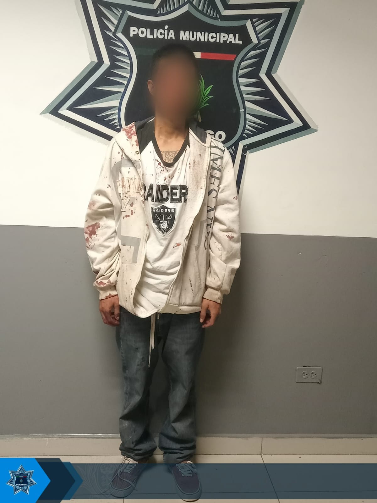 A petición de una persona del sexo femenino, elementos preventivos adscritos a la Dirección Municipal de Seguridad Pública, remitieron a quien responde al nombre de Jorge Antonio “N” de 22 años, mismo que fue señalado por la denunciante de haberle agredido a su menor hija, tanto física como verbalmente además de causarle una herida en la cabeza de aproximadamente 10 centímetros con un arma punzo cortante tipo machete.