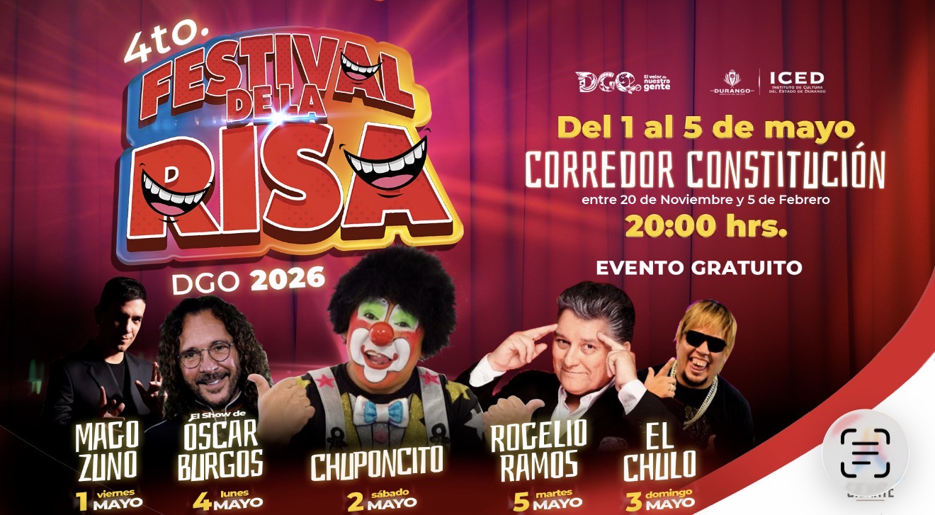 Durante el próximo fin de semana largo de mayo, se llevará a cabo la cuarta edición del Festival de la Risa en Durango, con una programación de espectáculos diarios dirigidos a público de todas las edades.